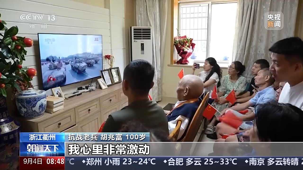 抗戰(zhàn)老兵 胡兆富:現(xiàn)在的中國(guó)是強(qiáng)大,看了閱兵以后我心里非常激動(dòng),中國(guó)人民站起來了,富起來了,強(qiáng)起來了。