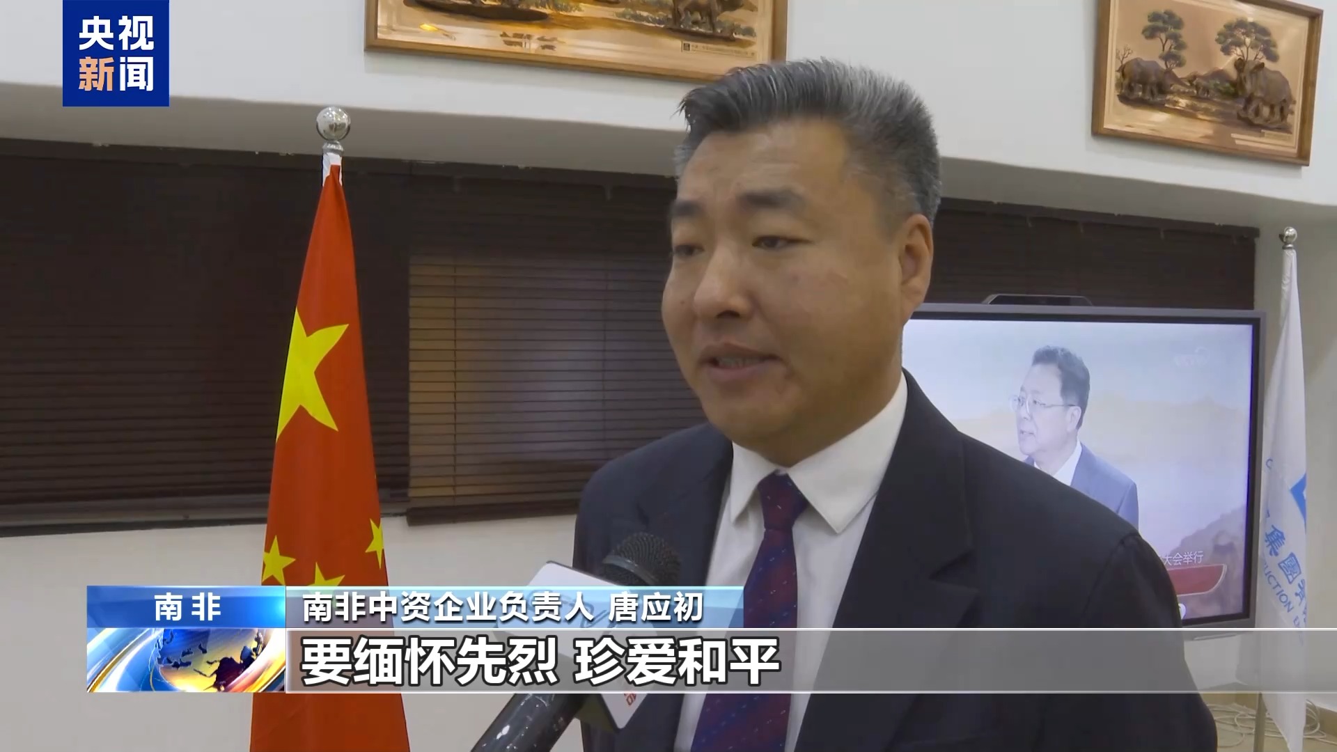 南非中資企業(yè)負(fù)責(zé)人 唐應(yīng)初:歷史告訴我們要緬懷先烈、珍愛和平。只有團(tuán)結(jié)才能勝利,只有合作才能共贏。作為海外建設(shè)者,今天我們胸懷祖國,奮戰(zhàn)一線。用實際行動證明,中國建設(shè)者攻堅克難、敢打必勝。