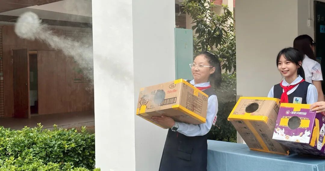 9月1日,在西安市浐灞第二小學各年級一樓的未來科學院里,“空氣的力量”實驗正在精彩上演:學生們手持自制空氣炮,輕輕一推,“砰”的一聲,煙霧圓環(huán)隨即而出,在現(xiàn)場“哇”聲一片里,感受科學的力量和魅力。