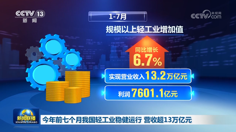 今年前七個(gè)月我國(guó)輕工業(yè)穩(wěn)健運(yùn)行 營(yíng)收超13萬(wàn)億元