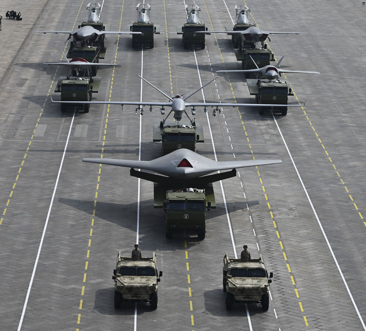 ↑9月3日,紀(jì)念中國人民抗日戰(zhàn)爭暨世界反法西斯戰(zhàn)爭勝利80周年大會在北京隆重舉行。這是空中無人作戰(zhàn)方隊接受檢閱。
