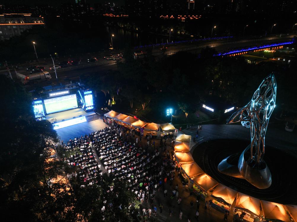 8月17日,在江蘇南京舉行的2025江蘇省城市足球聯(lián)賽第九輪比賽中,南京隊(duì)對陣鹽城隊(duì)。南京市在部分商場、街區(qū)等地設(shè)置觀賽“第二現(xiàn)場”,使用大屏幕同步直播賽事,同時(shí)設(shè)有游戲互動(dòng)區(qū)、煙火市集區(qū),讓球迷們度過歡樂時(shí)光。新華社記者 季春鵬 攝