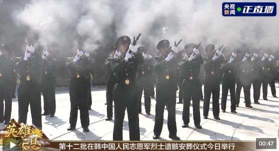 安葬儀式上,禮兵鳴槍12響,向志愿軍烈士致敬。這也是鳴槍禮的最高禮節(jié)。