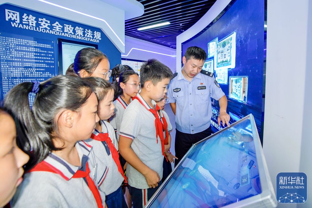 9月15日,在山東省臨沂市沂南縣第三實驗小學(xué),沂南縣公安局網(wǎng)絡(luò)安全保衛(wèi)大隊的民警給學(xué)生普及網(wǎng)絡(luò)安全知識。新華社發(fā)(王彥冰攝)