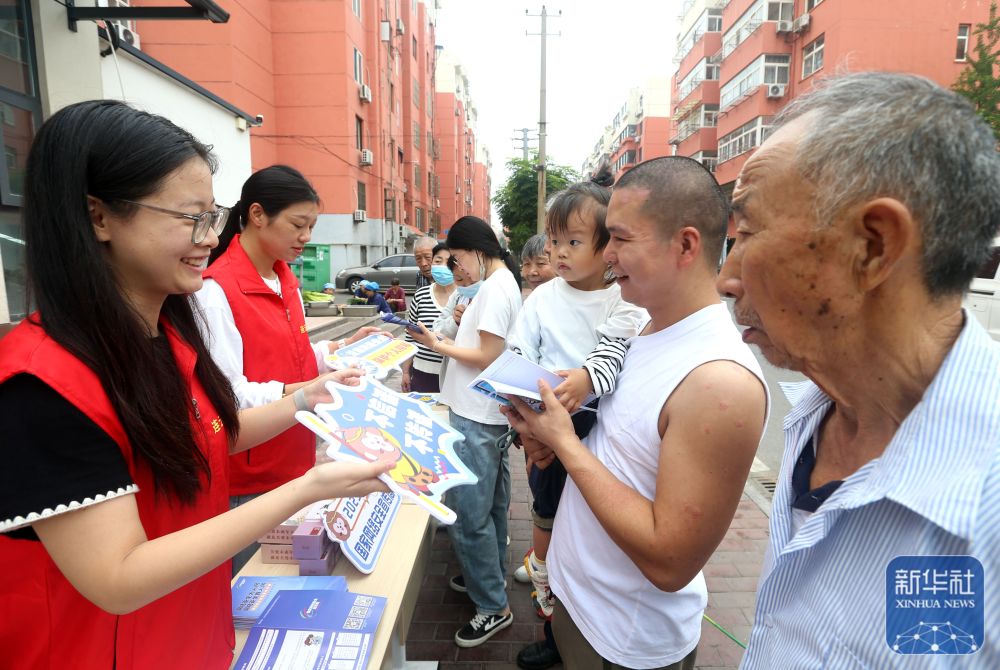9月15日,河南省洛陽市汝陽縣工業(yè)信息化和商務(wù)局工作人員在文化廣場為居民講解網(wǎng)絡(luò)安全知識。新華社發(fā)(康紅軍攝)