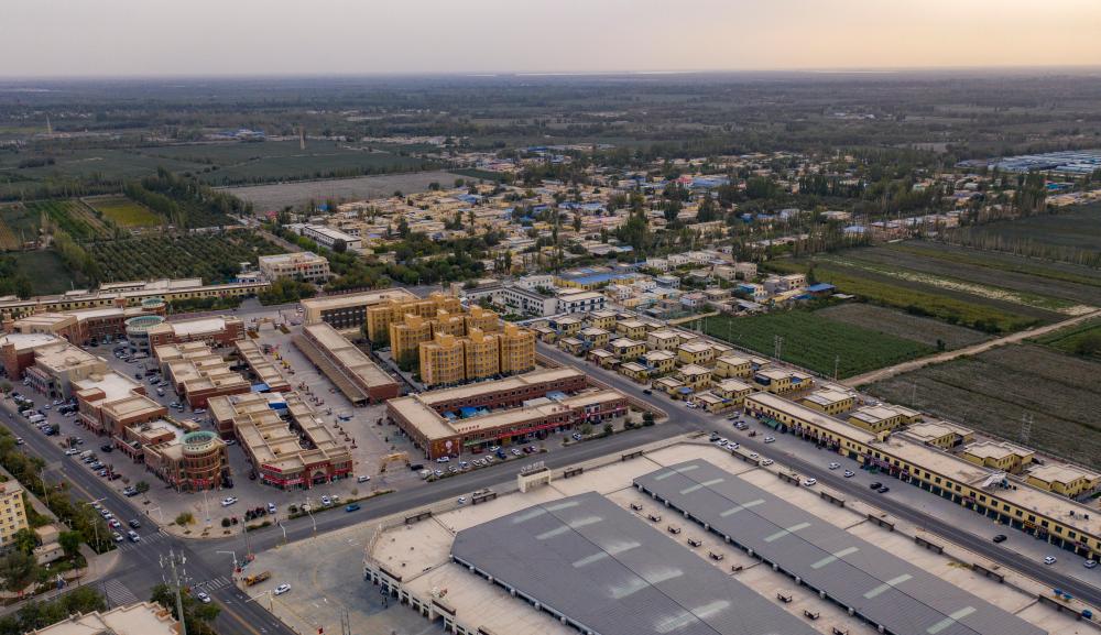 這是9月18日拍攝的新疆巴音郭楞蒙古自治州尉犁縣達(dá)西村(無(wú)人機(jī)照片)。