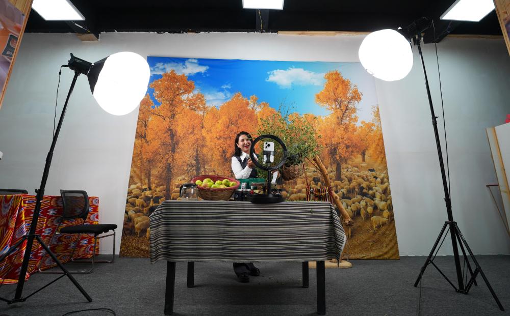 9月19日,尉犁縣電商協(xié)會(huì)負(fù)責(zé)人米日阿依·阿西木在達(dá)西村的電商基地直播推介達(dá)西村農(nóng)產(chǎn)品。近年來(lái),達(dá)西村構(gòu)建“農(nóng)戶生產(chǎn)+企業(yè)加工包裝+電商銷售+物流配送”全產(chǎn)業(yè)鏈,為縣域經(jīng)濟(jì)發(fā)展培養(yǎng)孵化本土直播電商人才,促進(jìn)傳統(tǒng)產(chǎn)業(yè)轉(zhuǎn)型升級(jí)。