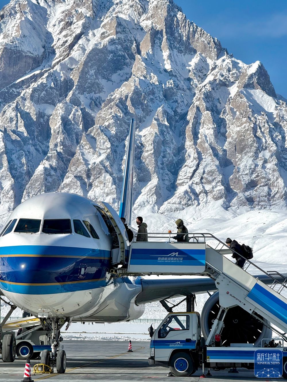 ↑1月13日,旅客在塔什庫爾干紅其拉甫機場準(zhǔn)備登機。