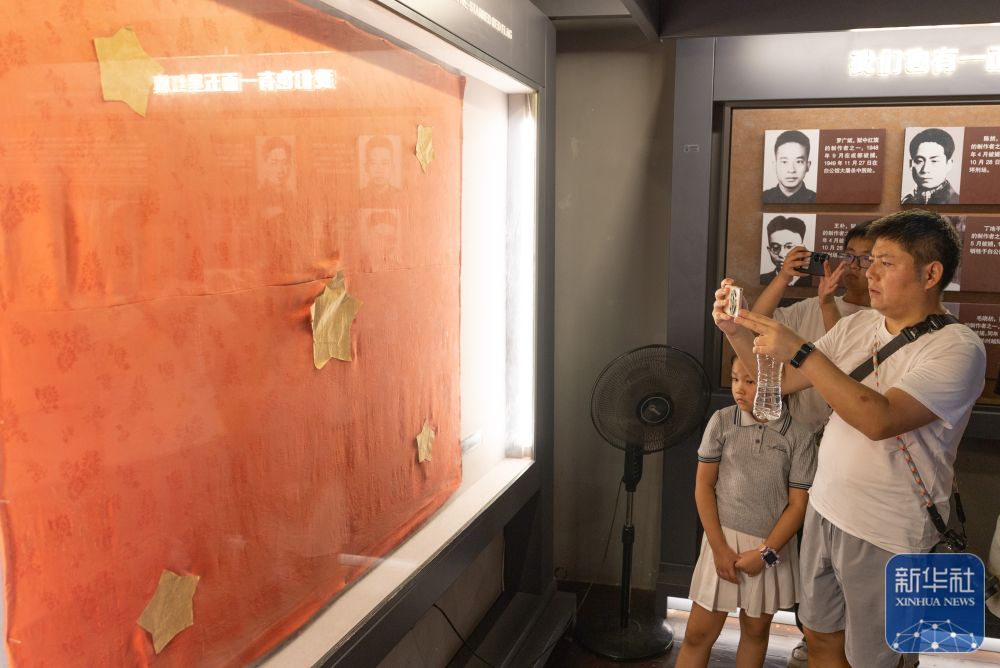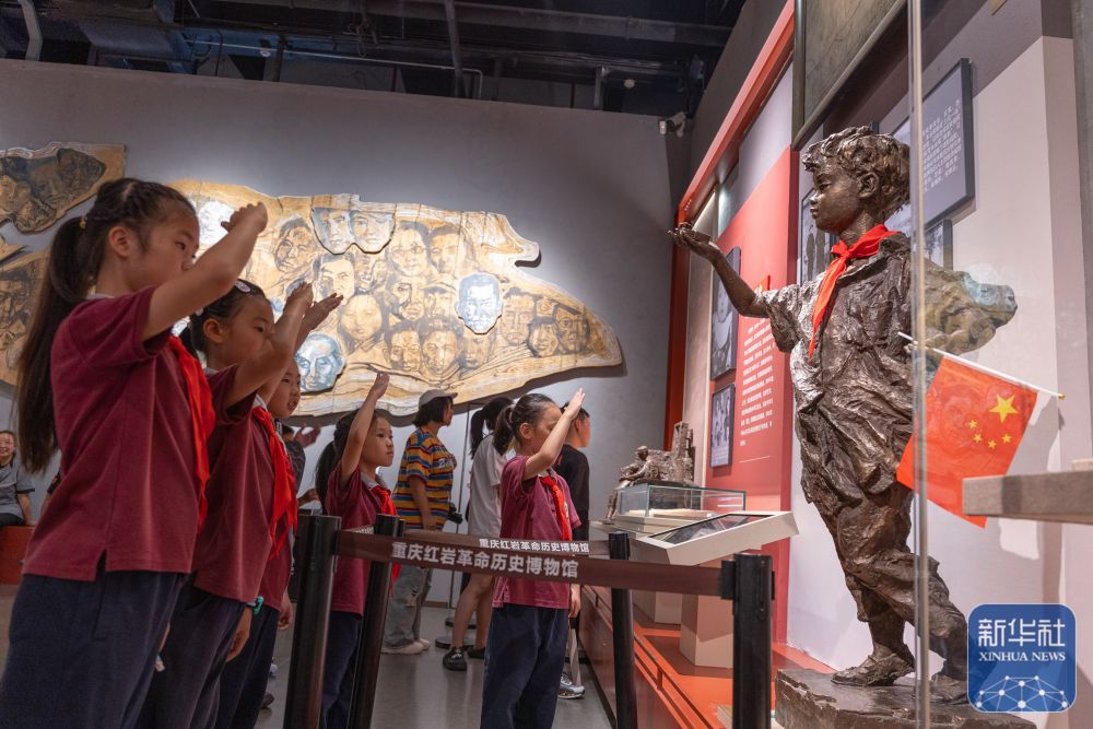 ↑ 10月6日,來自渝北巴蜀小學(xué)二年級(jí)九班的同學(xué)們?cè)谥貞c歌樂山革命紀(jì)念館參觀。新華社記者 陳誠 攝