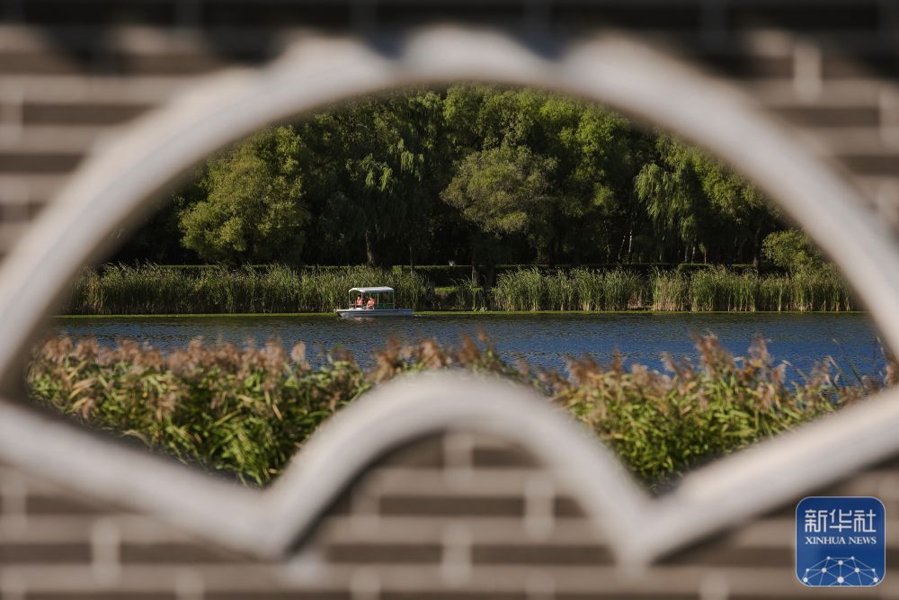 ↑ 10月6日,游客在長春市南湖公園乘船游玩。新華社記者 許暢 攝