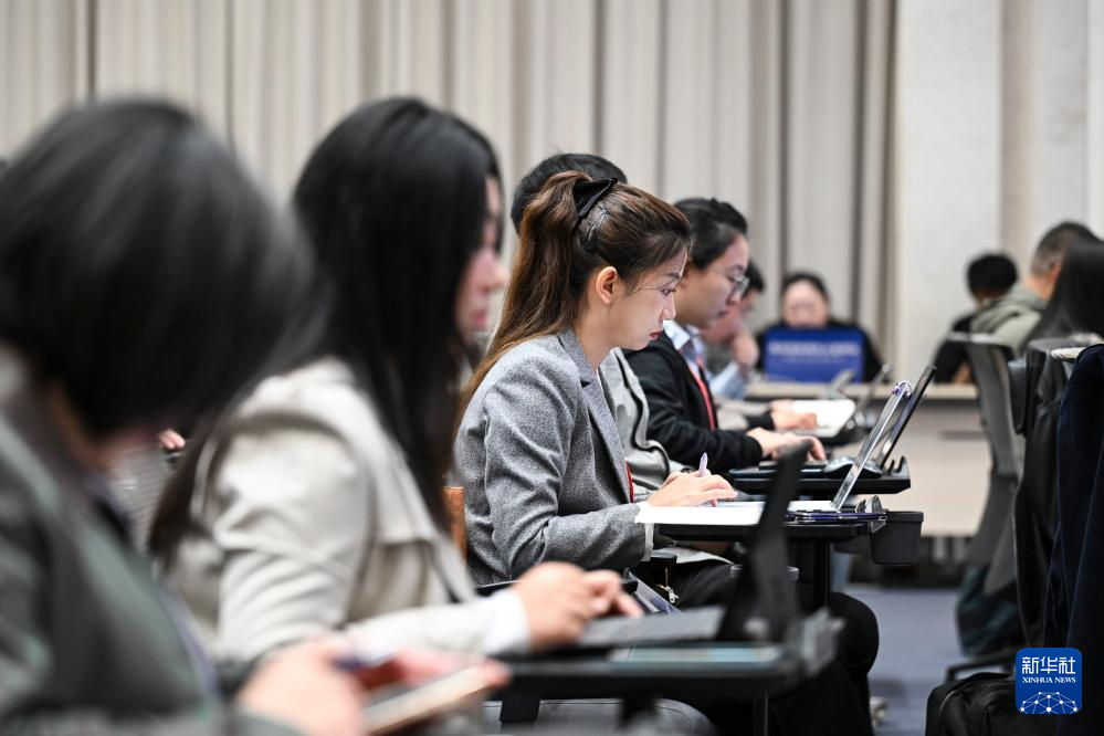 10月14日,國務院新聞辦公室在北京舉行“高質(zhì)量完成‘十四五’規(guī)劃”系列主題新聞發(fā)布會,國家發(fā)展改革委黨組成員、國家糧食和物資儲備局局長劉煥鑫,國家糧食和物資儲備局副局長錢毅、副局長秦玉云介紹“十四五”時期糧食流通改革發(fā)展成效,并答記者問。這是記者在現(xiàn)場工作。新華社記者 陳曄華 攝