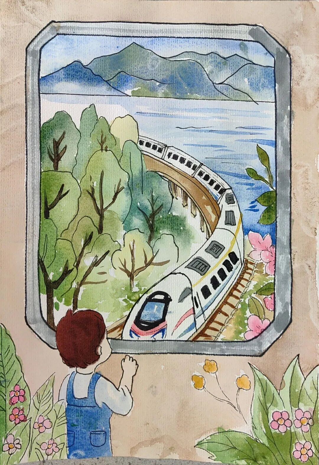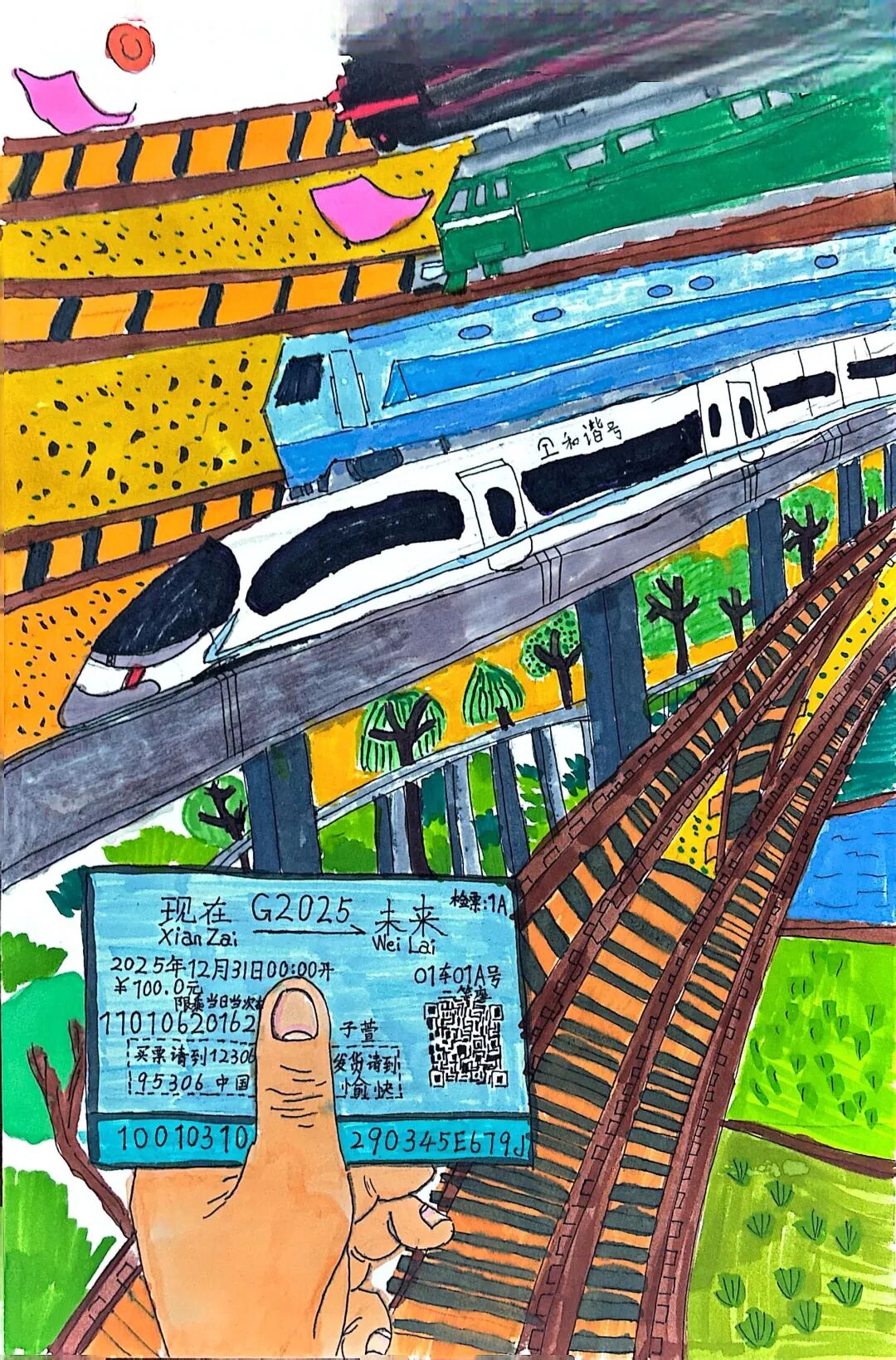現(xiàn)在我坐在復(fù)興號里,看電子屏上顯示列車時(shí)速達(dá)到350公里,青檀樹在窗外連成流動(dòng)的綠瀑。乘務(wù)員推著餐車經(jīng)過,玻璃幕墻外閃過曲阜孔廟的金色鴟吻。包里裝著曾曾祖父的鐵路修建圖影印件,那些泛黃的等高線正被新時(shí)代的測繪儀重新勾勒。