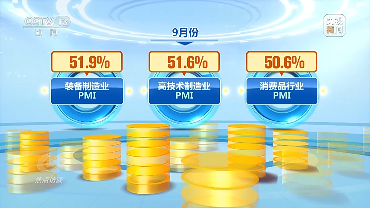 工業(yè)企業(yè)利潤(rùn)的明顯改善釋放的是市場(chǎng)需求在增加、價(jià)格在回升等積極信號(hào)。類似的積極信號(hào),我們?cè)谥圃鞓I(yè)采購經(jīng)理指數(shù)(PMI)中也能看到。9月份,裝備制造業(yè)、高技術(shù)制造業(yè)和消費(fèi)品行業(yè)PMI分別為51.9%、51.6%和50.6%,均位于擴(kuò)張區(qū)間。生產(chǎn)經(jīng)營(yíng)活動(dòng)預(yù)期指數(shù)為54.1%,連續(xù)三個(gè)月回升。