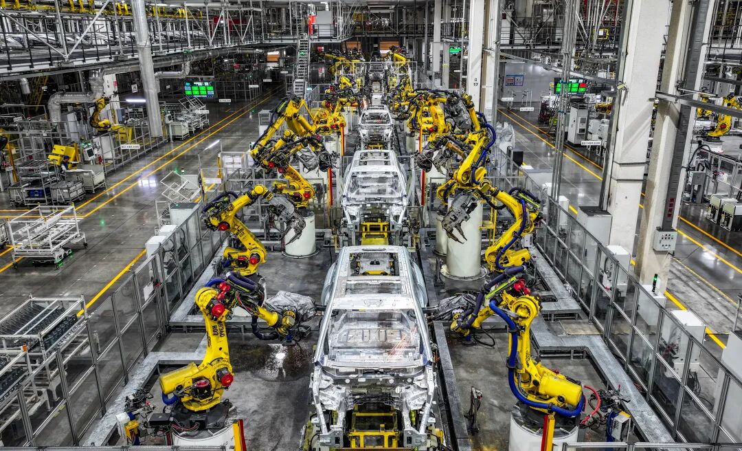 位于重慶市兩江新區(qū)的賽力斯汽車超級工廠拍攝的自動化生產作業(yè)現場。 新華社記者 王全超 攝