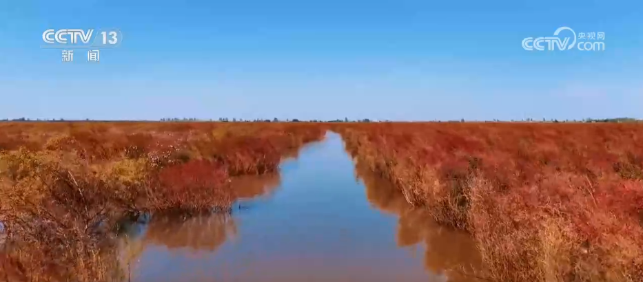 金秋時(shí)節(jié),在江蘇連云港臨洪河口,沿海灘涂濕地披上了多彩的秋裝。連片的堿蓬草在秋風(fēng)中次第變紅,層層疊疊。陽光灑下,一株株堿蓬草晶瑩閃亮,紅得耀眼。微風(fēng)拂過,枝葉搖曳生姿,在碧海藍(lán)天的映襯下,美不勝收。
