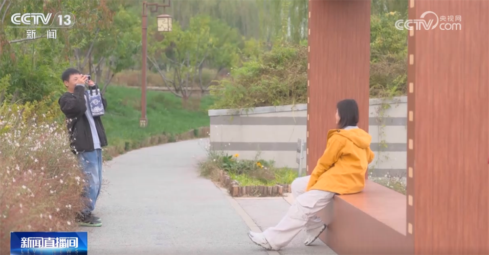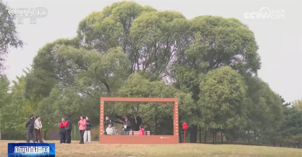 “秋日長(zhǎng)椅三分鐘計(jì)劃”創(chuàng)新推出了三大電影畫(huà)框場(chǎng)景。朝陽(yáng)公園的饅頭柳以其獨(dú)特的“西蘭花”樹(shù)形,成為市民“出片兒”的熱門(mén)機(jī)位。在地壇公園,畫(huà)框?qū)⒐虐嘏c銀杏林定格,皇家園林的秋日氣韻引來(lái)游客駐足。