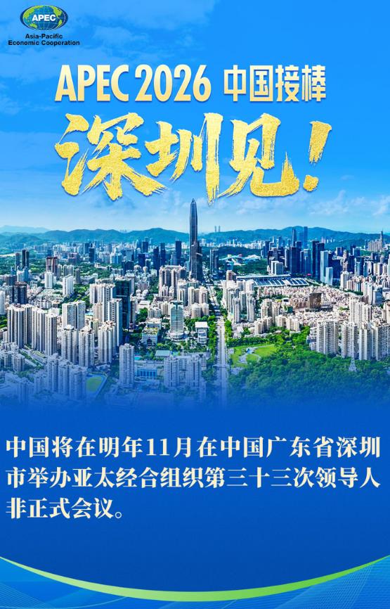 中國將在明年11月在中國廣東省深圳市舉辦亞太經(jīng)合組織第三十三次領(lǐng)導人非正式會議。