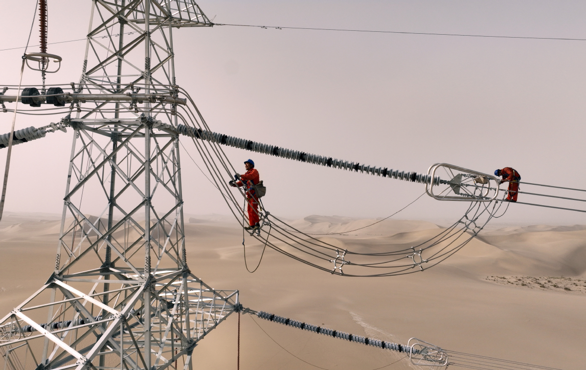 這一超級工程的建設歷程,是一場與“死亡之海”的持續(xù)較量。工程線路近半位于我國最大沙漠——塔克拉瑪干沙漠腹地,年均降水量僅約50毫米,蒸發(fā)量卻超2500毫米,全年三分之一為風沙日,極端天氣下狂風可掀起數(shù)米高的沙墻,自然環(huán)境極其惡劣。15年間,數(shù)萬名電網(wǎng)建設者扎根沙漠,在5000多個日夜中攻克多項世界級施工難題,用堅守書寫“沙退人進”的奇跡。