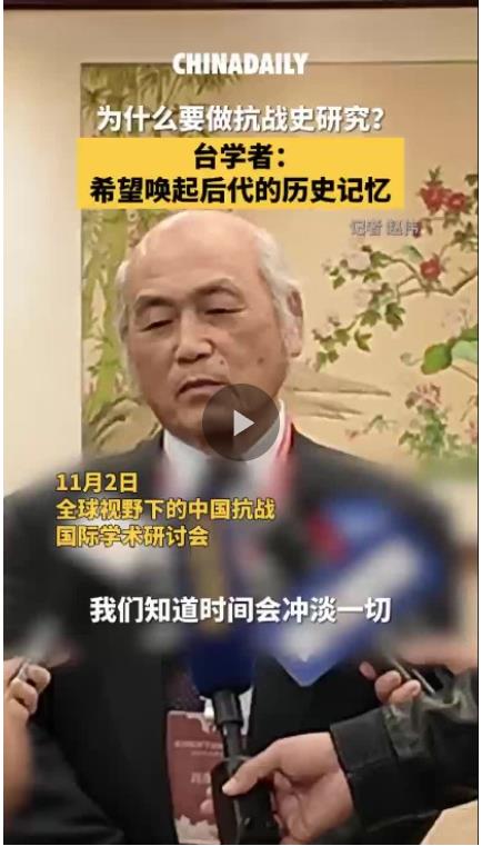 11月2日,在全球視野下的中國抗戰(zhàn)國際學(xué)術(shù)研討會上,臺灣政治大學(xué)歷史學(xué)系教授劉維開表示,自己對抗戰(zhàn)的記憶來自于父輩、祖輩的傳述,但自己的后代對抗戰(zhàn)的理解來源卻非常有限。因此他希望通過做歷史研究,喚起后代對抗戰(zhàn)的歷史記憶。他還表示,傳承歷史記憶,需要官方和民間一起努力。