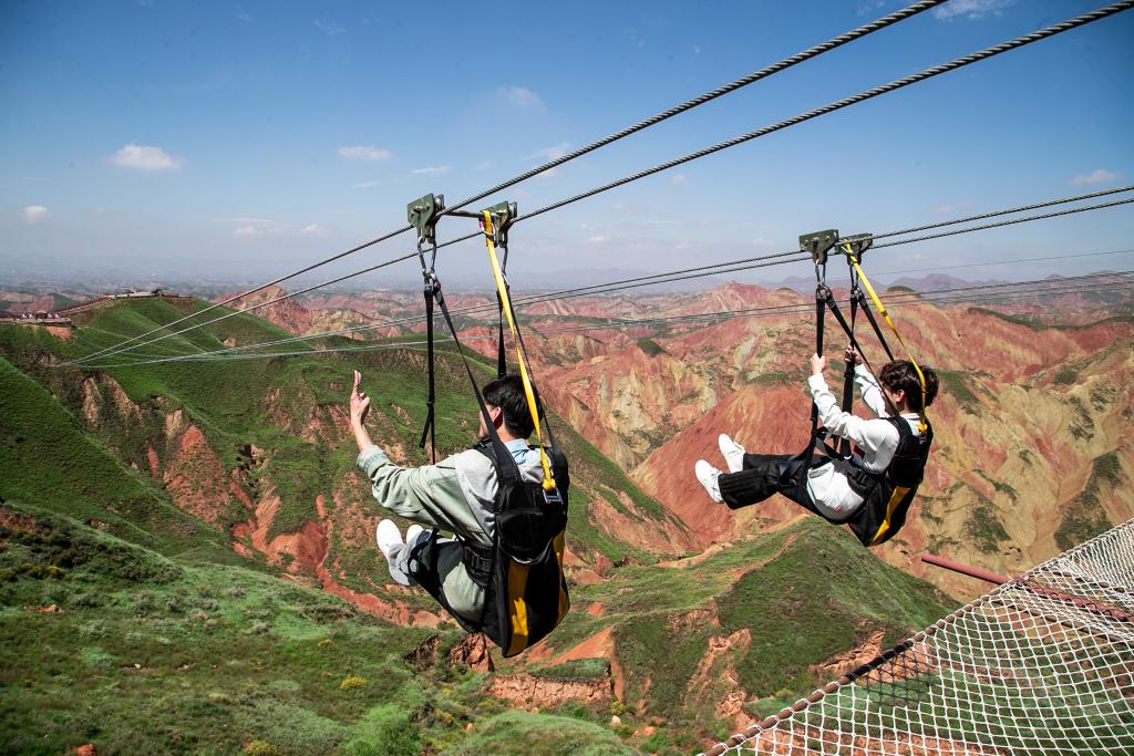 首次體驗(yàn)低空飛行的游客劉大偉贊嘆:“從空中俯瞰,連綿的彩丘和丹霞地貌猶如大地潑墨而成的瑰麗畫卷,雄渾而又夢(mèng)幻?!?/p>