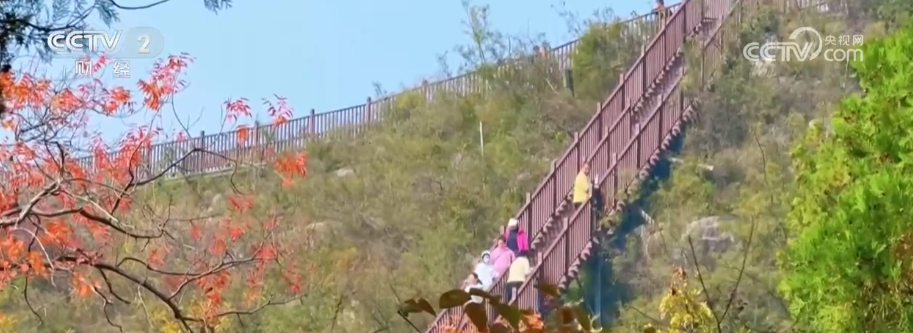 這里新落成的五彩步道全長1300米,沿山脊蜿蜒鋪展,如一條絢爛彩帶鑲嵌于山間,每百米便有一處景致,步移景異。游客既能賞紅葉爛漫、覽太行雄姿,亦可于登高望遠處邂逅一場秋日視覺盛宴。