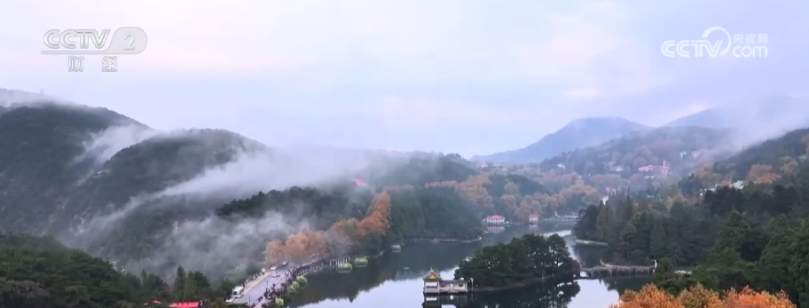 11月的廬山,秋色漸濃,風(fēng)景如畫。高空俯瞰,如琴湖畔,梧桐葉黃、雞爪槭紅。山霧隨風(fēng)而起,半遮半掩,色彩斑斕的秋天景色若隱若現(xiàn),倒映在湖中如夢如幻。眾多游客紛至沓來,登山賞景、打卡留念。