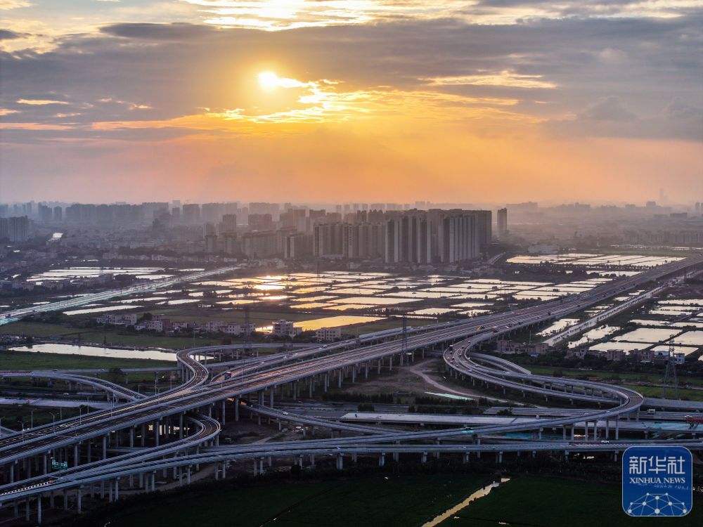 ↑沐浴在落日余暉里的南中高速新隆互通(2024年10月17日攝,無(wú)人機(jī)照片)。南中高速橫跨廣州、中山兩市,南通珠海、西進(jìn)江門(mén)、東達(dá)深圳,串聯(lián)起粵港澳大灣區(qū)核心區(qū)域東西南北大通道。通車后從廣州南沙15分鐘可至中山城區(qū),20分鐘可達(dá)深圳寶安。新華社記者 劉大偉 攝