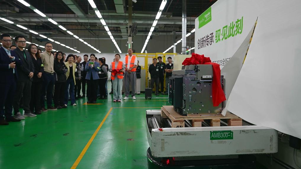 施耐德電氣全新升級的一款空氣斷路器產(chǎn)品在第八屆進(jìn)博會現(xiàn)場首秀,并于7日在其上??禈蚬S正式下線。受訪者供圖