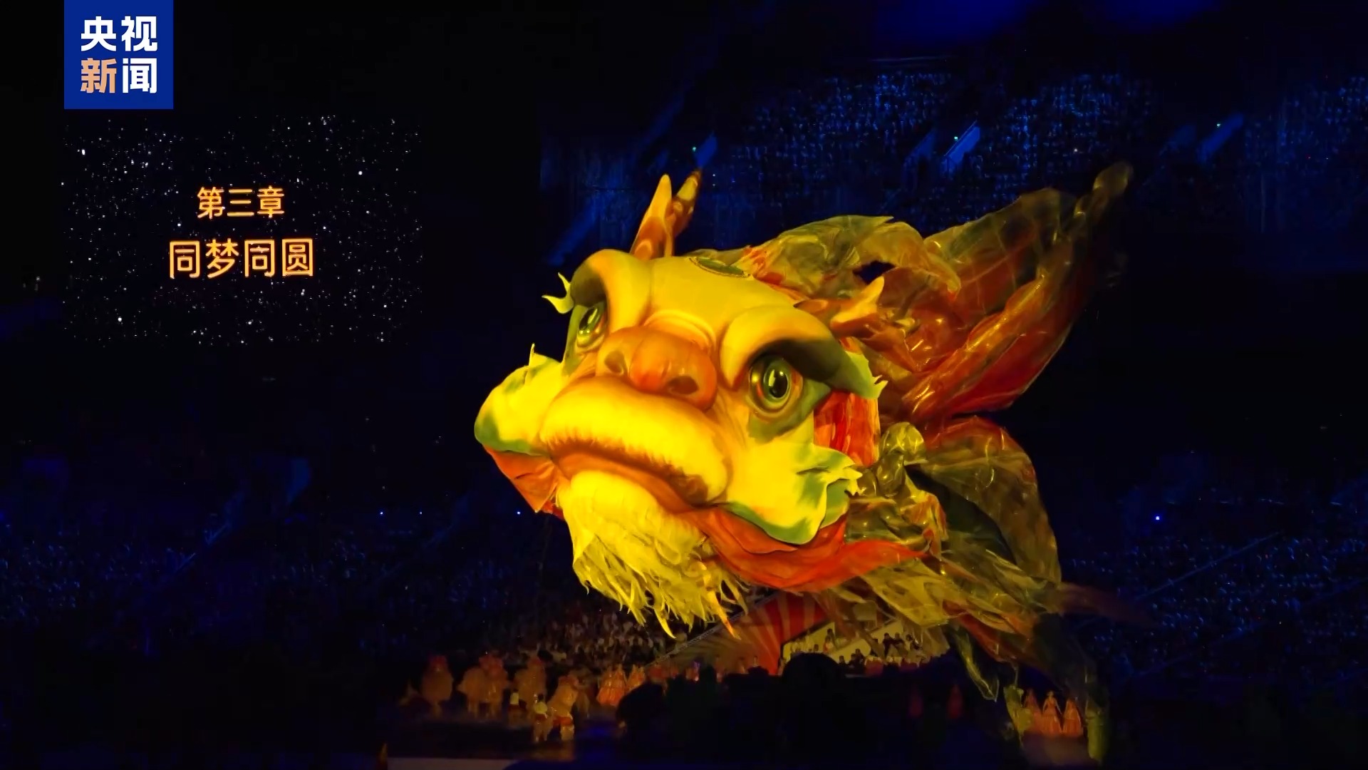 十五運(yùn)會(huì)開(kāi)幕式上,操控這條刷爆全網(wǎng)的巨獸鰲魚的,不是無(wú)人機(jī),也不是塔吊,更不是全息投影,它是以竹子為骨架,配上氣囊、彩繪,再用傳統(tǒng)風(fēng)箏線操控,回歸千年非遺本真。鰲魚的全身128片變色鱗片流光溢彩,龍須隨風(fēng)自然飄灑,飄逸靈動(dòng),如夢(mèng)似幻。