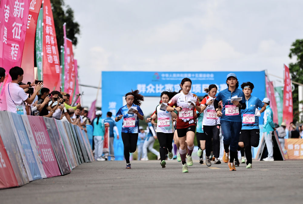 2025年5月8日,參賽選手在廣東云浮舉辦的第十五屆全國(guó)運(yùn)動(dòng)會(huì)群眾賽事女子定向接力賽中出發(fā)。新華社記者 黃國(guó)保 攝