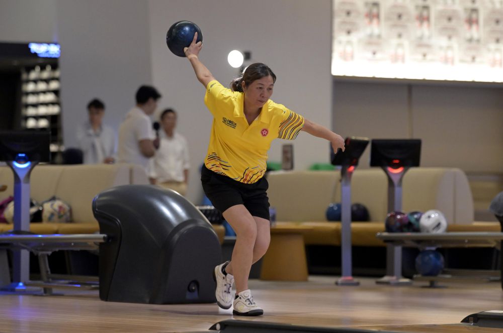 2025年8月11日,香港隊(duì)選手陳淑嫻在香港備戰(zhàn)第十五屆全運(yùn)會(huì)群眾比賽保齡球項(xiàng)目。新華社發(fā)(盧炳輝攝)