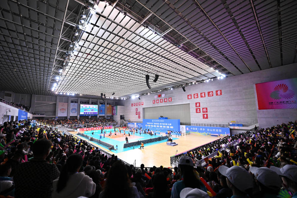 這是2025年11月20日拍攝的在廣東江門舉行的第十五屆全國(guó)運(yùn)動(dòng)會(huì)排球男子成年組冠亞軍決比賽現(xiàn)場(chǎng)。新華社記者 李鑫 攝