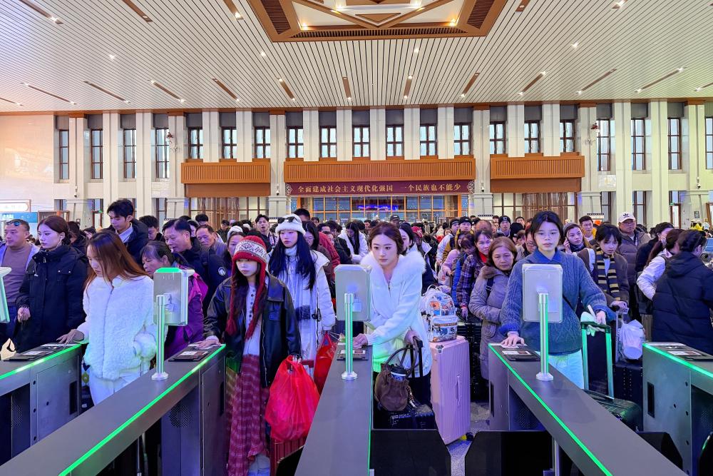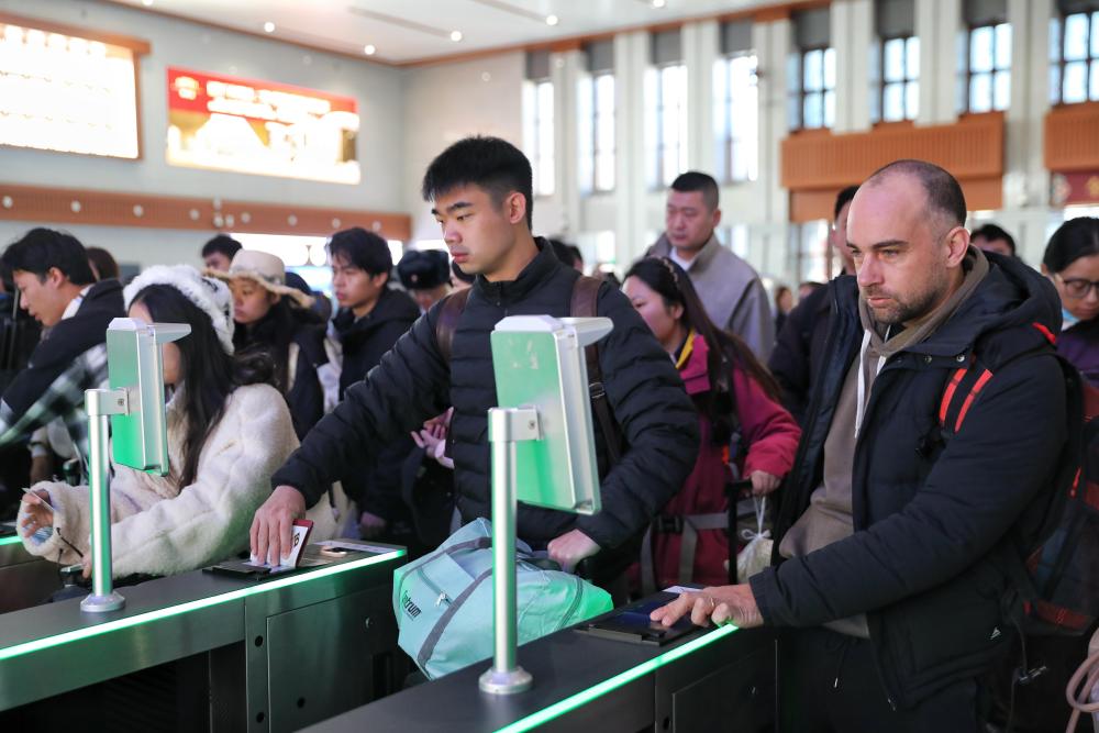11月18日,旅客在云南香格里拉站檢票乘車。