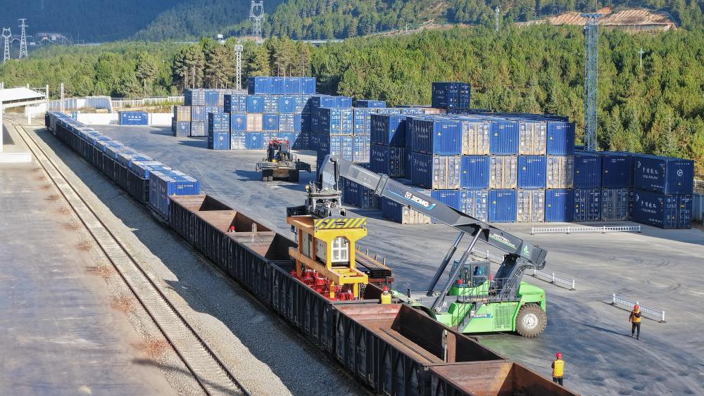 這是11月21日拍攝的云南迪慶藏族自治州小中甸站貨場(無人機照片)。
