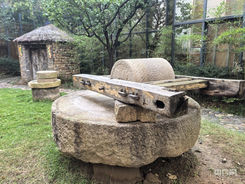 地雷戰(zhàn)紀念館館藏石雷和制作炸藥的石碾(央廣網(wǎng)記者 劉佳音 攝)