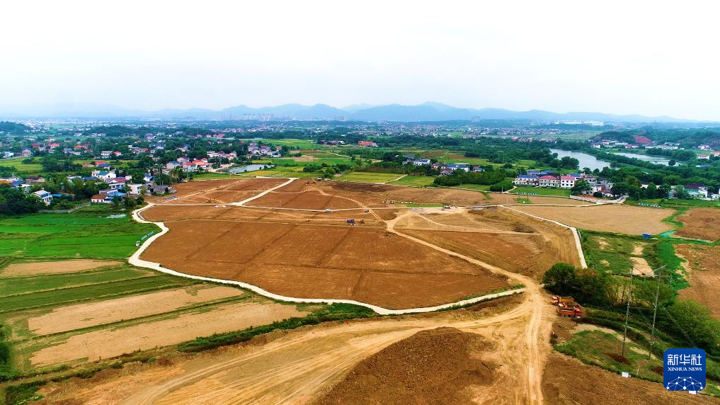 這是2022年8月31日拍攝的瀏陽市永安鎮(zhèn)豐裕村嚴(yán)格管控區(qū)地塊覆土作業(yè)現(xiàn)場(無人機照片)。新華社發(fā)(鄒禮卿 攝)