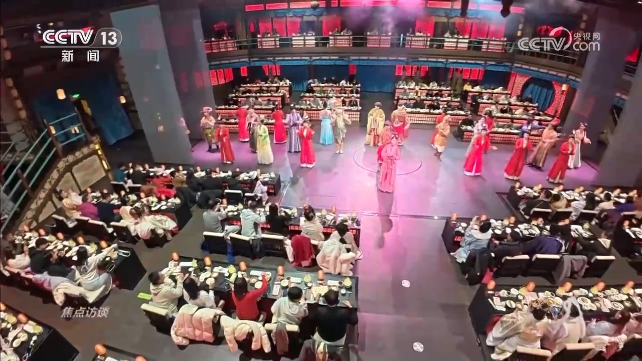 《清明上河·宋宴》是全國首個(gè)宋文化沉浸式餐秀,通過“宴席+演藝+科技”的創(chuàng)新形式,讓游客化身北宋汴京雅士,跟著宋代名人的腳步風(fēng)雅入宴。