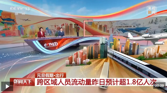 記者從交通運(yùn)輸部了解到,1月2日,全社會跨區(qū)域人員流動量預(yù)計(jì)超1.8億人次,同比增長13.4%。