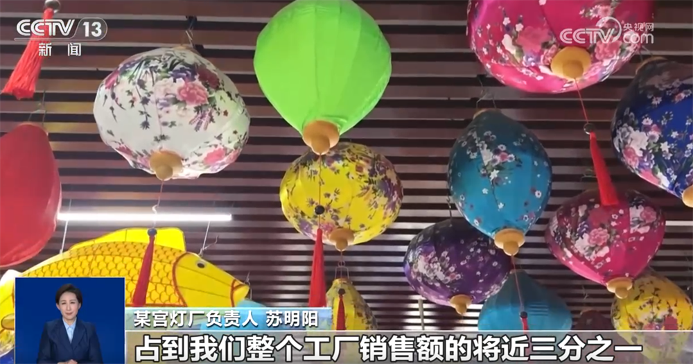 某宮燈廠負(fù)責(zé)人 蘇明陽(yáng):現(xiàn)在一天直播4小時(shí)—5小時(shí),到年底我們一天開(kāi)播將近16個(gè)小時(shí)。在線上賣,占到我們整個(gè)工廠銷售額的將近三分之一。