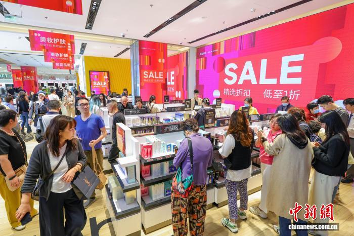 圖為元旦假期,cdf??趪?guó)際免稅城迎來(lái)購(gòu)物熱潮,眾多游客前來(lái)選購(gòu)心儀商品。 中新網(wǎng)記者 駱云飛 攝