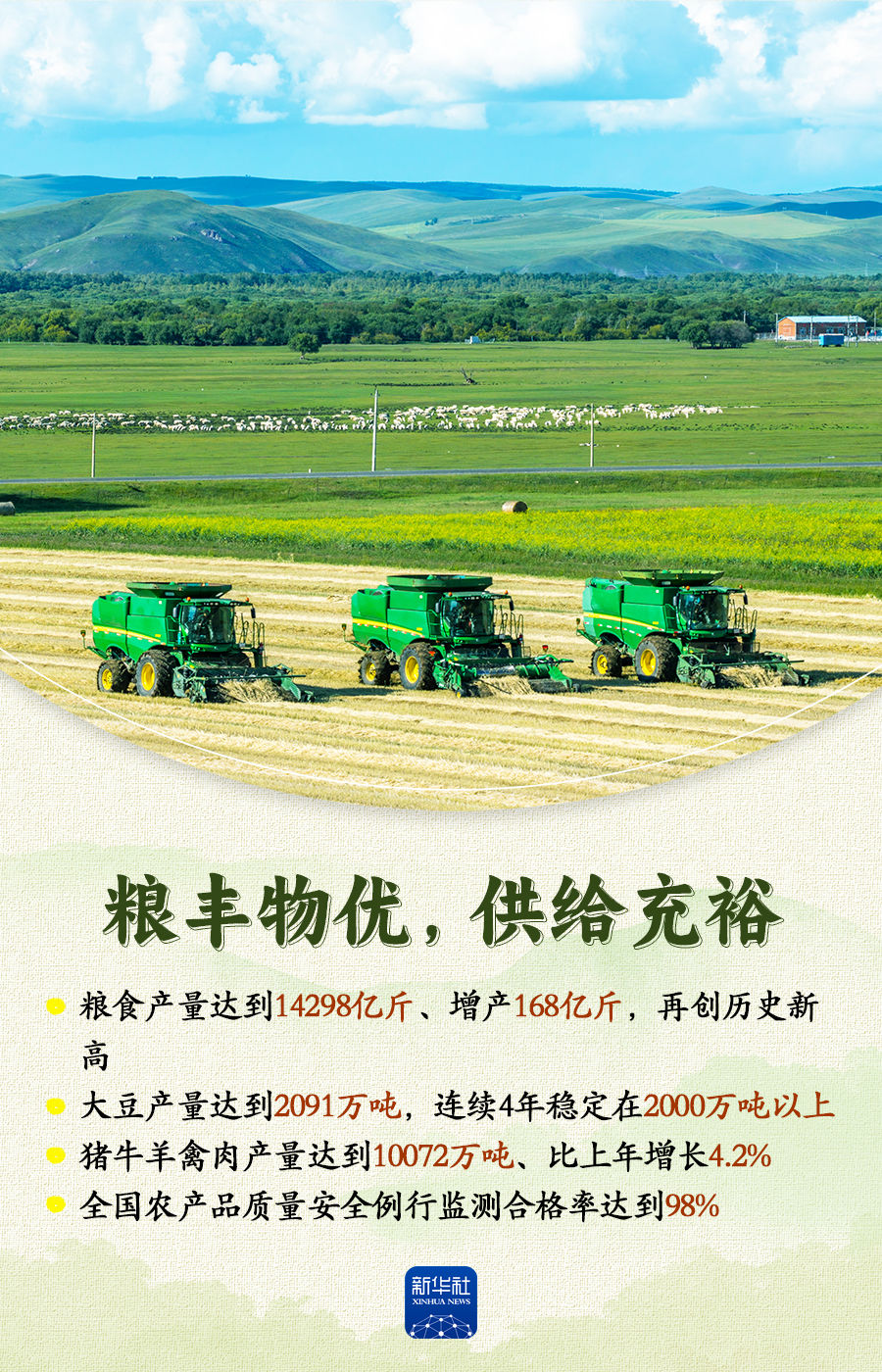 國務院新聞辦公室22日舉行新聞發(fā)布會,農(nóng)業(yè)農(nóng)村部相關負責人介紹加快農(nóng)業(yè)農(nóng)村現(xiàn)代化,扎實推進鄉(xiāng)村全面振興有關情況。2025年,我國農(nóng)業(yè)農(nóng)村發(fā)展保持穩(wěn)中有進、穩(wěn)中向好的勢頭,為推動經(jīng)濟社會高質(zhì)量發(fā)展提供了基礎支撐。跟隨這組海報,一起來看。