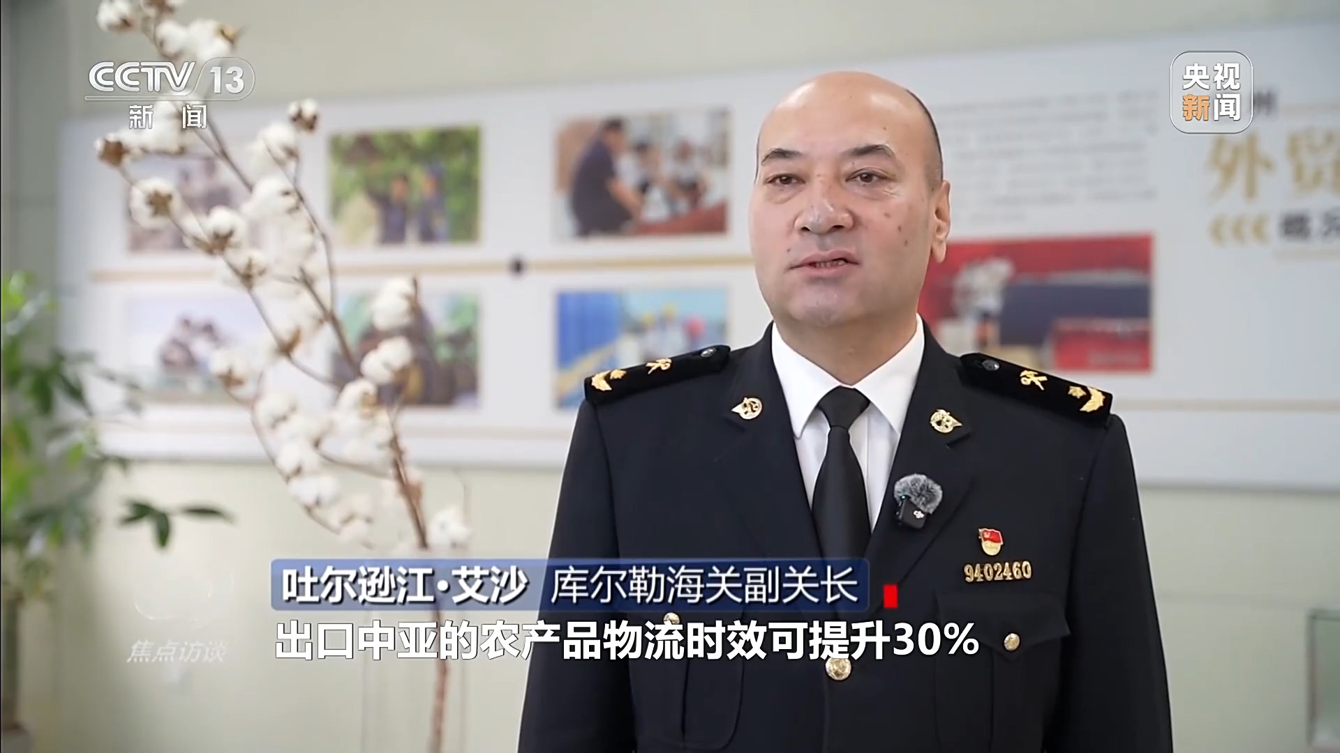 庫爾勒海關(guān)副關(guān)長 吐爾遜江·艾沙:出口中亞的農(nóng)產(chǎn)品物流時效可提升30%,大大帶動巴州特色農(nóng)產(chǎn)品、鮮食產(chǎn)品開拓中亞和歐洲市場。為了助力新疆發(fā)展,庫爾勒海關(guān)對鮮活產(chǎn)品實行“隨報隨查、隨查隨放”,整體查驗時間壓縮60%。