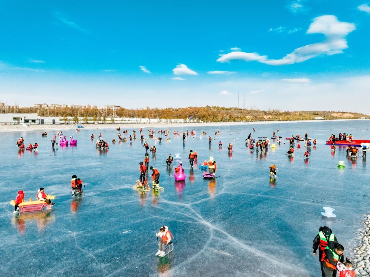 在榆林市科創(chuàng)新城的水上運動中心,光潔的冰面同樣熱鬧非凡,工作人員正為即將到來的冰雪嘉年華做最后準(zhǔn)備。項目負責(zé)人張偉介紹,中心自開放以來,已成為市民和游客體驗冰雪樂趣的重要場所。