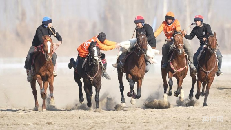 在麥蓋提縣,首屆“刀郎杯”全疆刁羊賽馬爭霸賽的賽場上,騎手們聞令而動(dòng),盡顯精湛馬背技藝 (央廣網(wǎng)發(fā) 吾斯曼·麥麥提 攝)