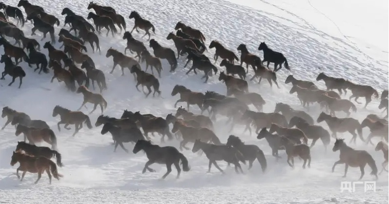 天馬踏雪奔騰 (央廣網(wǎng)發(fā) 昭蘇縣委宣傳部供圖)
