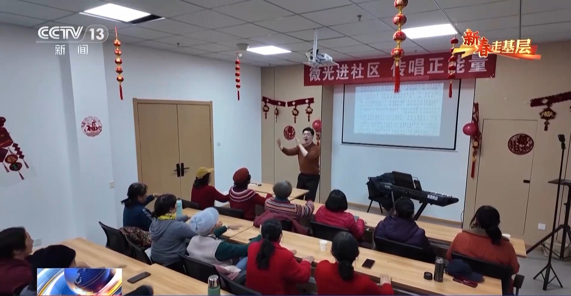 董福順在大學(xué)學(xué)的是聲樂,在九江市老年大學(xué)已經(jīng)當(dāng)了9年的音樂老師。這個臘月趁著老年大學(xué)放假,他把課堂搬進(jìn)了社區(qū)、村莊和養(yǎng)老院,免費(fèi)帶大家上課。