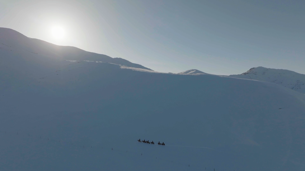 在如刀的風(fēng)中和遼闊的雪原,一群年輕的騎士策馬前行,即使臉被風(fēng)吹紅,手腳凍開(kāi)裂,也沒(méi)有停下腳步。