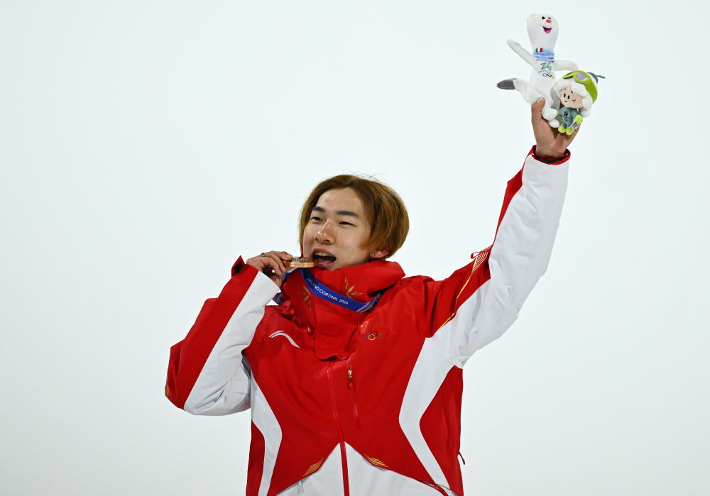 2月7日,季軍中國選手蘇翊鳴在頒獎(jiǎng)儀式上。新華社記者 張宏祥 攝