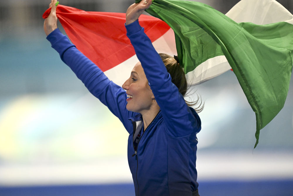 在速度滑冰女子3000米比賽中,意大利老將弗蘭切絲卡·洛洛布里吉達(dá)以刷新賽會(huì)紀(jì)錄的成績首奪冬奧會(huì)金牌,為東道主贏得了在本屆冬奧會(huì)上的首枚金牌。她的成績把這個(gè)項(xiàng)目的冬奧會(huì)紀(jì)錄縮短了2.65秒。中國選手楊濱瑜排在第17位。