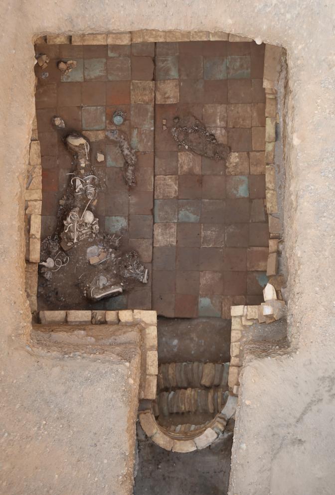 這是庫(kù)車市友誼路墓群發(fā)掘出土的唐代斜坡墓道磚室墓。(新疆文物考古研究所供圖)